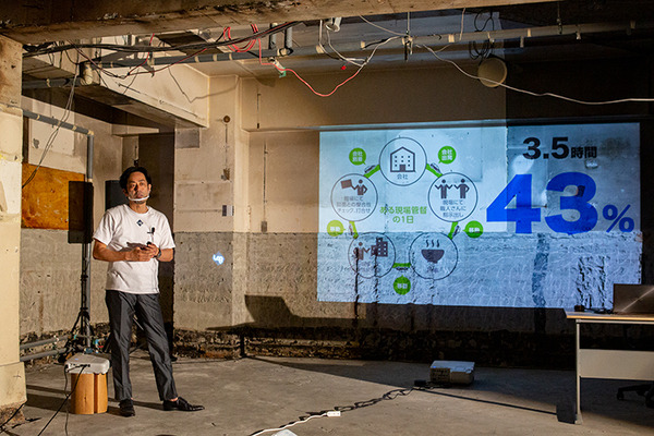 「建築業界の現場はレガシー、DX(デジタルICT活用)は驚くほど遅れている。現場監督の一日の移動時間は全国平均で3.5時間(※)。これは1日の43%にあたり、43%もの非生産的な時間を毎日費やしている。現場との良好なコミュニケーションは維持したまま、ICT技術でこの移動時間を削減することが目標」と中堀氏は語る。(※log build調べ)