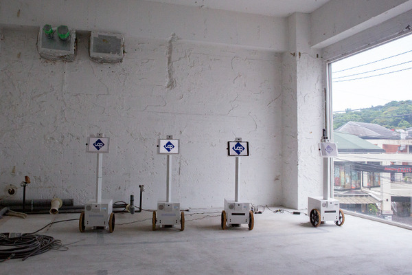 建築途中の現場を模した、一風変わった記者発表の会場に、車輪を搭載したアバターロボット(遠隔操作ロボット)が入場してきた。株式会社log build (ログビルド)が自社開発したロボット「Log Kun」(ログくん)だ。