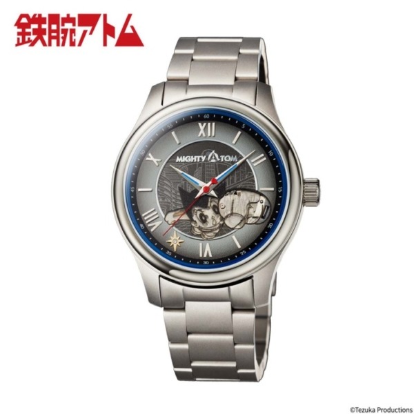 アトムは内部のメカニックな機械式ムーブメントが透けて見えるスケルトン仕様で、大人の遊び心を演出している。ケースとバンドには宇宙船などにも使用される、軽くて強度が高く錆びにくいチタンを贅沢に使用。七つの力で悪を退治するアトムにわくわくした少年時代を呼び覚ましてくれるレトロフューチャーなメカニカルウォッチ。
