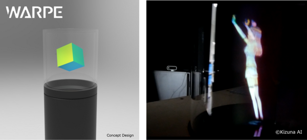 「WARPE」はリコーが運営するアクセラレータープログラム「TRIBUS」(トライバス)に採択された社内プロジェクト。現実空間に全方位映像を映し出せる立体投影装置を開発し、市場探索を行っている。同装置の映像は現時点で約3.7億ボクセル(三次元像を構成する画素の数)のカラー動画立体表示を実現している(参考:フルハイビジョンの平面映像では二次元像を構成する画素の数は約207万画素)。
