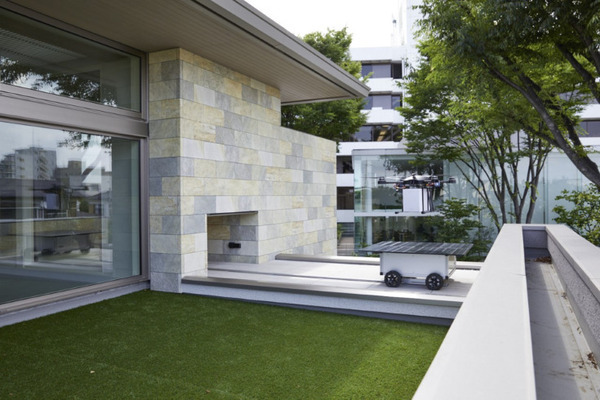 将来的に荷物の配達状況可視化システムに連動することを想定して、移動式ドローンポートとそれに対応したドローン配送システムを住宅に実装。居住者は専用アプリケーションを使い、ドローンポートを屋外に移動させておく。ドローンはC.O.S.M.O.S(コスモス)による飛行管理のもと、ポートへの離発着、荷降ろし、配送拠点への帰還を行う。IoTとC.O.S.M.O.Sを組み合わせることで、アプリケーション連携、自律飛行、ワイヤレス給電を行うことが可能。