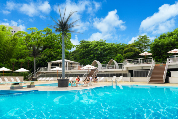 LOVOTとの滞在と合わせて都内ホテル最大級のアウトドアプール『GARDEN POOL』の入場券が付いたプランも用意。プールは完全予約制のため、安心して寛ぐことができる。