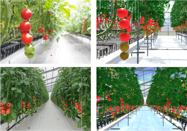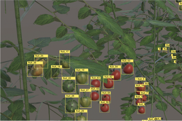 果実の個数計測、熟度の推定、病害虫診断など、農業用画像解析AIの開発に必須な教師データの迅速活用に役立てる。シミュレーション空間上でデータ生成することで、現実世界において必要となるデータ収集およびデータラベリング作業を省略可できる。