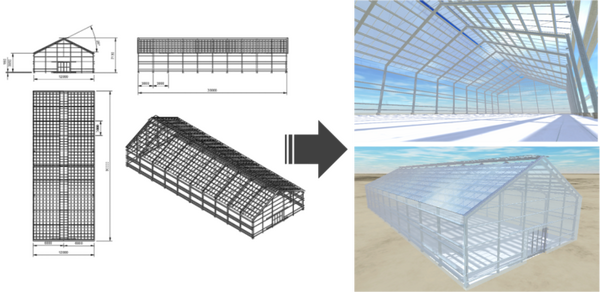 栽培ハウスの新規設営時やリフォーム時にプラットフォームを活用することで、オリジナルな環境の生成に加え、ハウスの間取りをシミュレーションすることで導線の整理、また必要となる農業資材の見積り、株数からの収穫量の算出なども行うことが可能になる。
