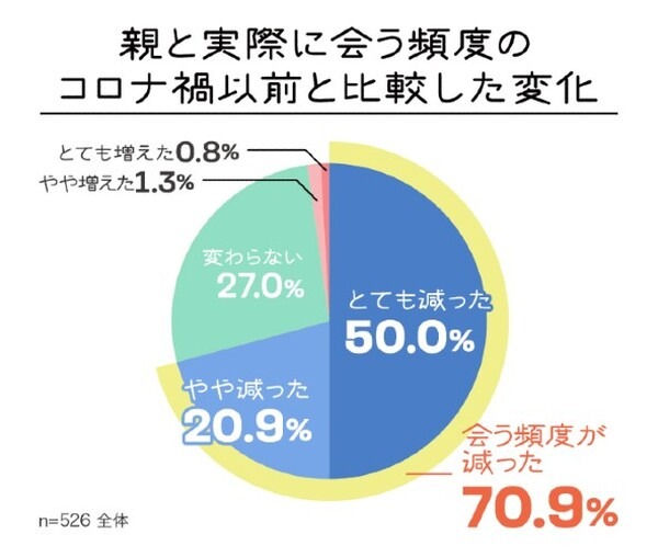 同調査によれば、コロナ禍で離れて暮らす親と会う機会「減少」したと回答した人が約7割。