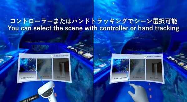 ・コントローラーだけでなくハンドトラッキングでもメニュー選択可能。