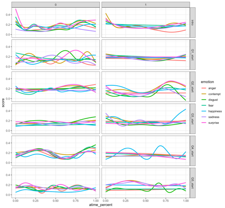 【表情データと面接評価の関係2:表情の組み合わせ、時系列パターンと面接評価の関係】