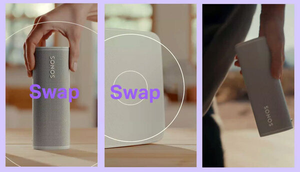 また、新たに搭載された「Sound Swap」機能は、スピーカーの再生/一時停止ボタンを長押しすることで、再生中の音楽を一番近くにあるSonosシステムのスピーカーに切り替えて再生することができる。例えば、据え置き型SONOSスピーカーで再生している最中に、出かけるために「Sonos Roam」にスピーカーをスワップ、外出先から帰ると再び「Sonos Roam」から据え置き型にスワップして切り替えることなどが簡単に可能となっている。いわば音楽を部屋から部屋へ、部屋から外へとシームレスに移動できるイメージだ。