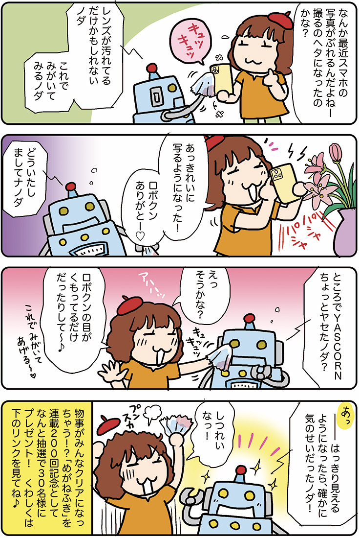 【ロボクン連載200回記念】やすこーん先生描き下ろしの「特製めがね拭き/スマホ画面拭き」を抽選で30名様にプレゼント!