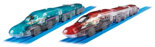株式会社タカラトミーは鉄道玩具プラレールシリーズの新商品として、電池なしで電動走行するプラレール「電池いらずで出発進行!テコロでチャージ」シリーズ、「E5系新幹線はやぶさ」と「E6系新幹線こまち」を、2021年10月21日(木)から全国の玩具専門店、百貨店・量販店の玩具売場、インターネットショップ、プラレール専門店「プラレールショップ」、タカラトミー公式ショッピングサイト「タカラトミーモール」等にて発売することを発表した。希望小売価格は各4,180円(税込)。