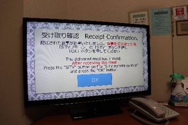 ・ホテルの客室にあるテレビシステムと連動し、ロボットの到着及び確認を自動で行えるシステムを導入