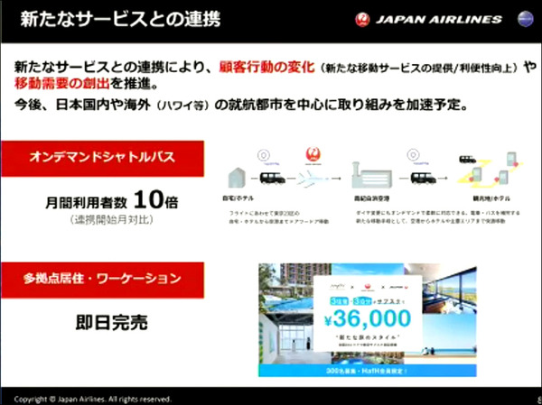 また、新たな移動体験への挑戦はUBERとの連携に限らず、国内外やワーケーションとの連動も視野に入れた企画商品も提供を開始していて、「オンデマンドシャトルバス」については提携前と比較して月間利用者数が10倍に急増しているという。