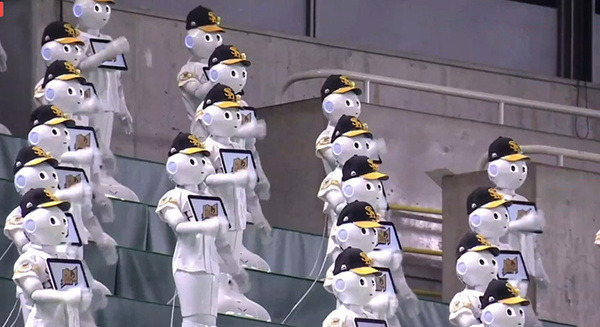 100 robots “Pepper” support the SoftBank Hawks baseball team with cheer dance