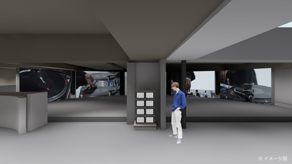「DJ Matsunaga Routines for Ginza Sony Park」では世界最大規模のDJ大会「DMC WORLD DJ CHAMPIONSHIPS 2019」で優勝したワールドチャンピオンであるDJ松永のプレイを、今回のプログラムのために撮り下ろした通常は見ることのできない様々なアングルの映像を公開。約170インチ相当のスクリーン5面で構成された体験空間で、DJ松永のダイナミックでテクニカルなDJプレイを体感できる。