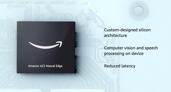 従来製品は「Amazon AZ1 Neural Edge」プロセッサが搭載されていたが、「Echo Show 15」には新開発の次世代「Amazon AZ2 Neural Edge」プロセッサが搭載される。「Amazon AZ2 Neural Edge」はクアッドコアの拡張性あるアーキテクチャーを採用した機械学習(ML)推論エンジン。Amazonが独自設計したAZ2アーキテクチャーでは、従来、膨大なコンピュータ処理能力をクラウド上で行うことを必要としていたCVアルゴリズムも、すべてデバイス上で処理できるようになるという。これにより、「Echo Show 15」は「ビジュアルID」に登録された人物を認識し、デバイス上でイメージ処理を行うことができるようになった。