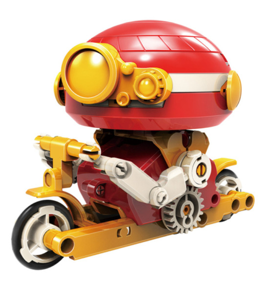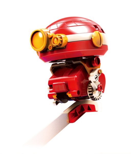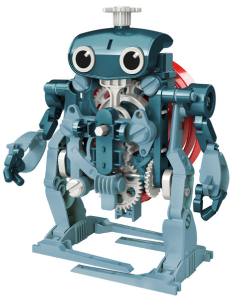 ロボタイミーはプラスチック製のゼンマイをグルグル巻いてパワーを生み出すメカ工作キット。メカはゼンマイで動くため、乾電池もモーターも不要。パーツの組み換えで3タイプのメカを作る事ができる。参考価格2,970円(税込)。