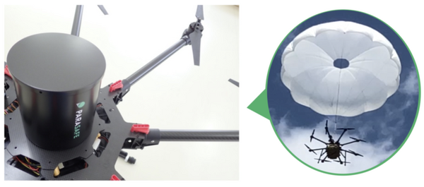 産業用ドローン向け緊急パラシュートシステム「PARASAFE」はドローンの落下を検知し、火工品を遠隔的に作動させることにより瞬時にパラシュートを展開し、安全にドローンを降下させる装置。日本化薬ではエアバッグ用インフレータやシートベルト用ガス発生装置等の自動車用安全部品の開発・製造・販売をグローバルで展開しており、そこで培った火工品技術を応用して「PARASAFE」を開発している。「PARASAFE」は2021年12月に販売を開始する予定。