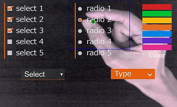 また、公共の場で多くの人が触れるキオスク端末のタッチ画面なども、コロナ感染症の影響で、直接、指で触れる操作に抵抗を感じるユーザーが増えている。そのようなケースでも安心して利用できる環境を実現するために開発されたのが非接触UIライブラリー「KAIBER Touchless」だ。汎用のカメラを使い、AIが指の動きを認識することでキー入力やドラッグ操作などを実現するソフトウェア技術がコアとなっている。そのため高価な専用デバイスは必要ない。