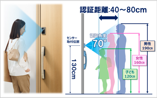 ・センサーユニットのドアへの取り付け高さは、大人から子どもの背の高さまでの認証を可能とする130cmに設定した。