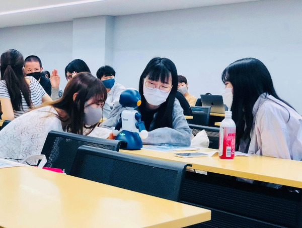 6~8月に大学での講義等で実践検証をしたところ、講師の戸田氏は「講話や対話をする際、こちらから遠隔で操作して受講生にSotaの目(視点)を向けることで、受講生の表情やジェスチャー・感情等の確認ができると共に質問などの発言内容も聞きやすくなる。」、講義に参加している受講生からは「Sotaには違和感なく、(ロボットの向こうにいる)戸田講師との対話も自然にできた。」という感想が寄せられ、Sotaを導入することによる対話型授業の学習効果が期待できると考えている。