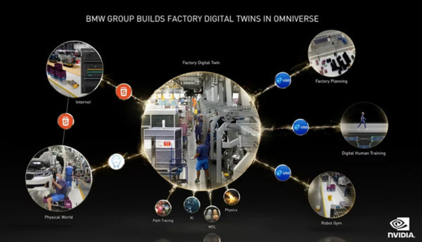 また、BMWは前回の「GTC 2021」で、ローゲンスベルク工場をOmniverseデジタルツイン工場を導入していることを紹介したが、現在では3つの工場をデジタルツイン化、総面積は1000万平米に拡大したという。