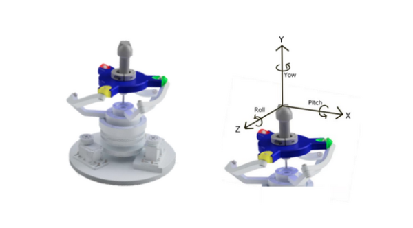 面パラレルリンク機構を採用することで、プローブ先端を回転中心とした3自由度(ロール・ピッチ・ヨー)の回転運動を可能とした。また、鮮明なエコー画像を取得するため、PSUにはしなやかに体表面の凹凸に追従しつつ、胸壁に対するプローブの押し付け力を適度に維持する機構的な工夫が施されている。