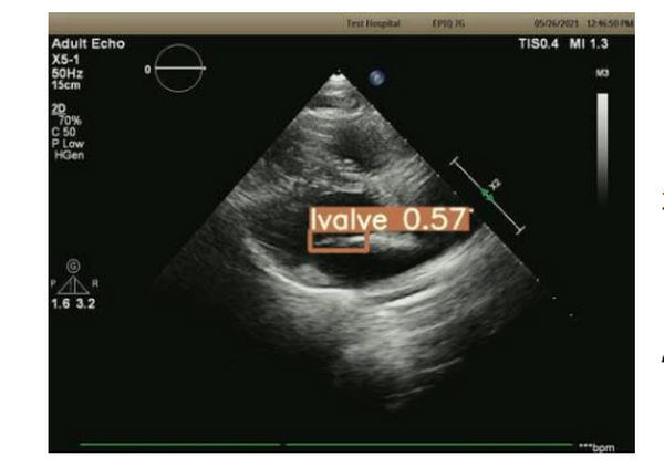 超音波プローブの位置や角度に応じて心疾患に特徴的なエコー画像が大きく変わるため、微細なコントロールが不可欠。そこで心疾患のエコー画像をAIに読み込ませ、それらと照合しながら適切なエコー断面を描出するAI基盤技術を開発している。