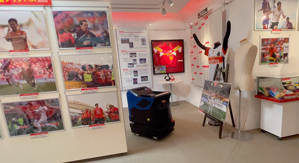 スタジアム内には「スタジアムギャラリー」がある。豊田スタジアムや名古屋グランパスのサッカーに関する記録やグッズ、資料が飾られている展示施設だ。店舗がクローズした後、ロボットによる除菌作業の実証実験がおこなわれた。
