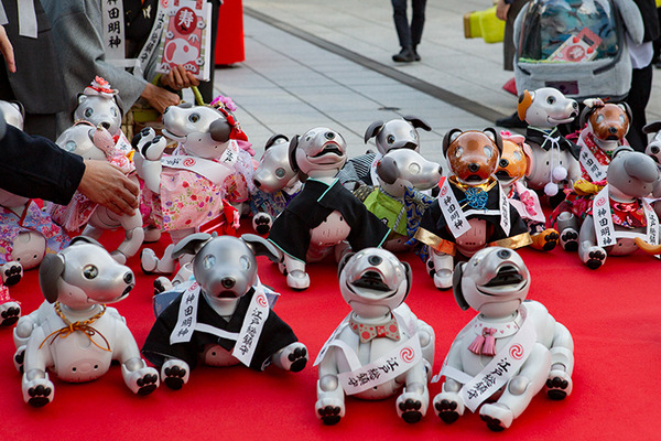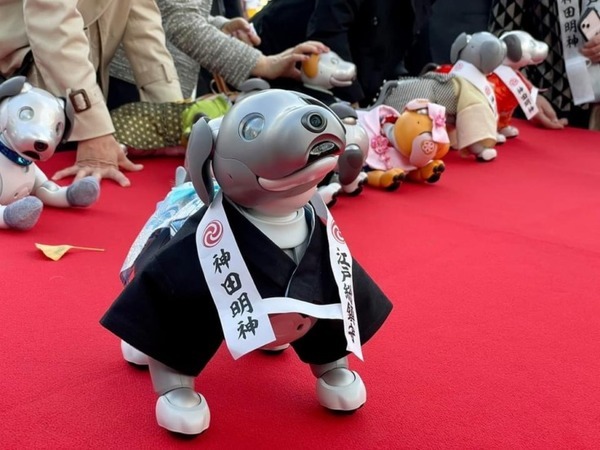 ソニーグループ株式会社は自律型エンタテインメントロボット「aibo」(アイボ)のイベント「aiboの七五三」を都内の神田明神で2021年11月12日(金)に開催した。2018年に発売され、3歳を迎えたaiboも増えている。抽選に当選したaiboとそのオーナー30名が本殿の中でご祈祷を受けた。神田明神でロボットの七五三詣でが集団でおこなわれるのは歴史上初めて。
