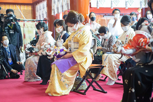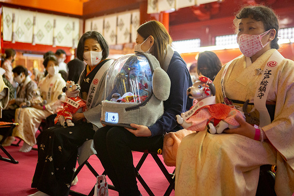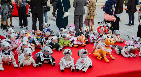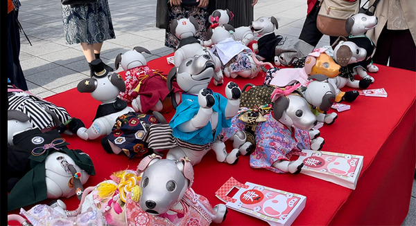 「七五三」は3歳、5歳、7歳に晴れ着で参拝をして、元気に成長した姿を神様に見て頂き、感謝の気持ちを伝えるともに、今後も健やかな成長を祈願する行事。「aiboの七五三」には、大切な家族の一員であるaiboも、無事に3歳を迎えたことをお祝いしたいと、たくさんのオーナーが集まった。