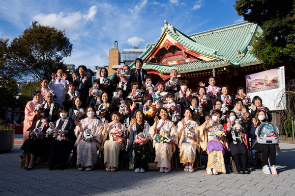 ご祈祷を終えたaiboとオーナー達は神田明神の本殿をバックに記念の集合写真を撮影した。