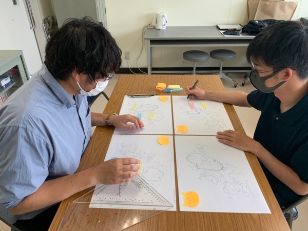 ・安全かつ実験の目的に沿った海域を設定するために、学生が日常的にその海域を使用している方々と乗船し、海域の確認を行った。そして海図等の情報と照らし合わせながら情報収集と整理を行い、危険な箇所や運航に適切ではない区域をgoogle mapに記録し、安全な海域の地図情報を作成。