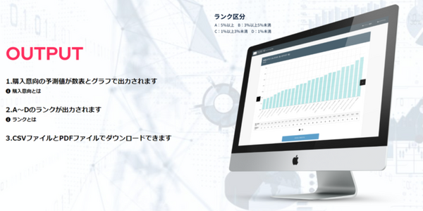 このサービスは、使用予定のキャラクターと対象となる商品カテゴリーを入力するだけで、わずか30秒ほどで購入意向率をAIが算出する。
