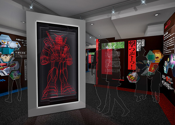 各主人公の立体パネルやモビルスーツのビジュアルなど、コントラストのコンセプトを表現した特別展示。