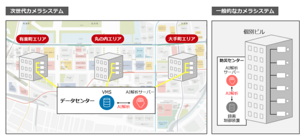 同事業では丸の内エリアで三菱地所が所有・運営する約20棟のビルを対象に、従来、個別ビルごとに実施していたカメラの制御・管理をエリア全域で一括(最大4万台接続可能)して行う。2021年度末に6ビル、2022年度末に8ビルを接続する予定。さらに、同カメラシステムの導入により、複数ビルに跨がって、最先端のAI画像解析をセキュアに行うことが可能になり、入居企業やスタートアップ企業など、様々な企業と連携の上、AI・テクノロジーの活用を深化させ、ポストコロナ時代や人手不足社会にも柔軟に対応できる魅力あるまちづくりを推進していく。
