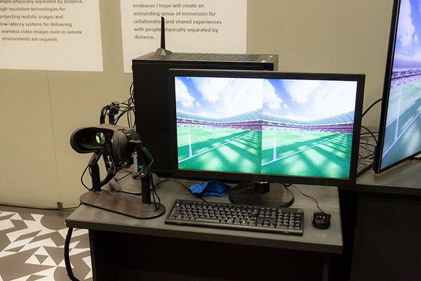体験会は人数を制限して実施され、世界初の新しいマニュピレーター技術のほか、VRゴーグルに組み込める4K+4Kの高精細1インチOLEDディスプレイやEPTS技術の体験コーナーも設けられていた。