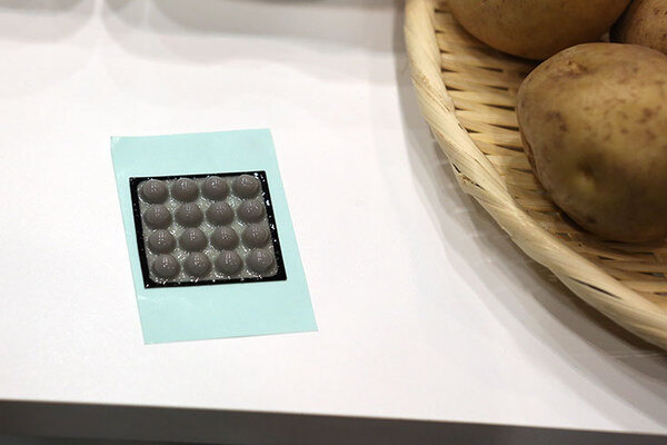 そのため、今回のシステムにはビジョン(カメラ)はないし、ディープラーニング(DNN)も使っていなければ機械学習もおこなっていない。数理モデルを使って「物がすべる量」からつかむチカラを求め、触覚センサーだけで物を把持しようというわけだ。触覚センサーとは実際は2種類の、合計168個ものセンサーで構成されている。