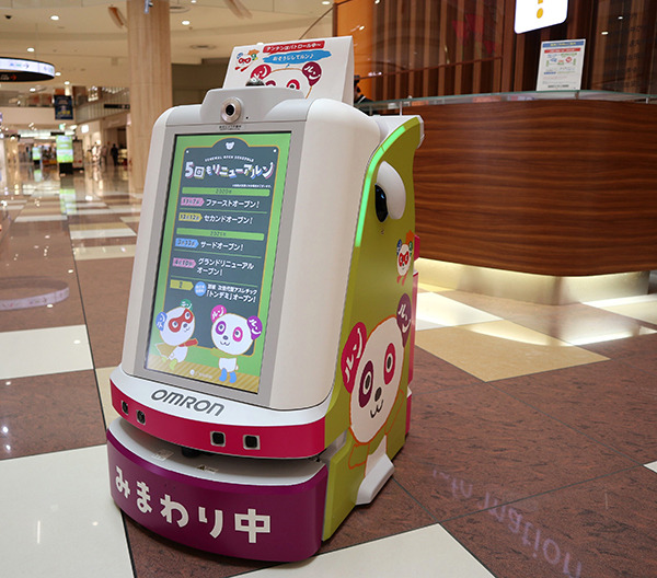 複合用途に使えるというのが売りの「Toritoss」だが、具体的にはどんな用途で引き合いがあるのだろうか。「お客様の考え方によって全然違います。オフィスビルですと『サイネージ』と『清掃』が主な用途ですし、『警備』の観点を重視したいというお客様もいらっしゃいます。たとえばスーパーマーケットですと、特売情報を出して売上に寄与する効果を狙うところもありますし、警備員の画像をディスプレイに出して走行することで万引き防止、その抑止効果を期待されているお客様もいらっしゃいます」(オムロン乘友氏)