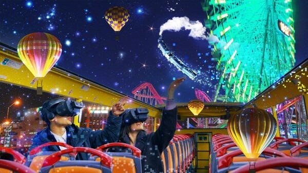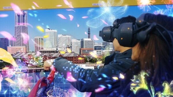 同ツアーは、横浜に初めて訪れる人も、近隣の方も 改めて横浜の街の魅力を体験できるXRツアーだ。横浜の魅力を海、花、景観に大きく分けて、演出している。VRゴーグルをつけると、海のそばでは深海生物が出現する海中都市に変身。花博などのイベントや四季折々の花を楽しめる横浜における花のスポットでは、花びら舞い散る花の世界に。景観は、まるで横浜が遊園地になったかのような世界や、大さん橋から見えるみなとみらいの街並みを背景に花火が打ち上がります。横浜の名所にヴァーチャルならではのファンタジックな世界観と、オープントップバスだからこそ感じる風や気温などの体感が混ざりあい、これまでにない未来の観光体験ができる。