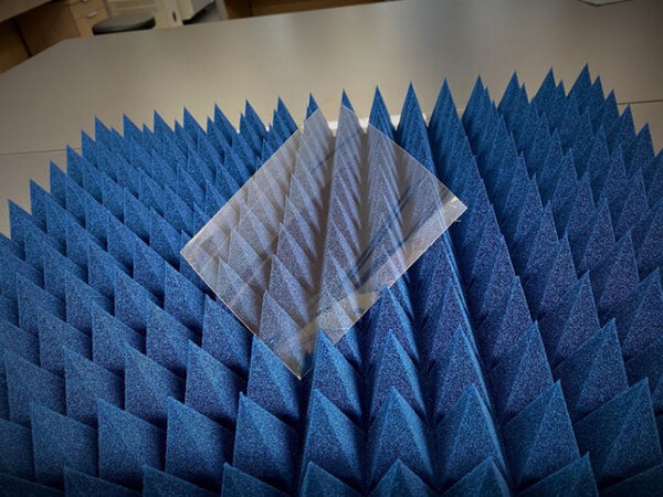 電波環境評価に関しては、DOCOMO Innovations, Inc.の協力の下で検証を進め、5Gから6Gまでの周波数帯域をカバーし、従来にはない高い透明性・電波拡散性を併せ持ったフィルムであることを確認した。
