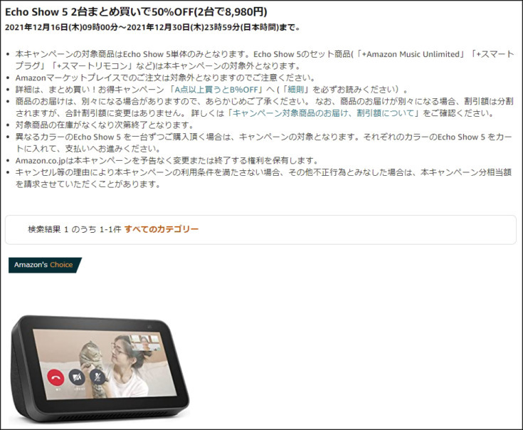 なお、Amazonの公式キャンペーンとして、12/30まで「Echo Show 5(Echo Show 8)が2台まとめ買いで50%OFF」販売が実施されている。東京駅で購入できない場合でも、オンラインで購入することができる(特別パッケージや紙袋などは東京駅のショップのみの特典)。