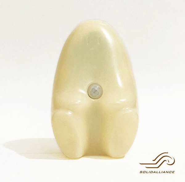 背中のボタンを1回押すと、ピッという音とともに測定開始。何度か色が変わり、最後にゆっくり点滅した測定結果の色とともにWARASHIがおしゃべりしてその場の状態を教えてくれる。(おしゃべりモードに設定の場合)