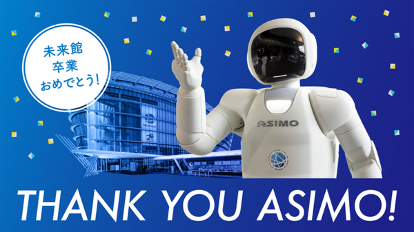 日本科学未来館はヒューマノイドロボット(人型ロボット)「ASIMO」(アシモ)が3月末をもって未来館を卒業するのを記念して、2022年3月18日(金)~31日(木)に「THANK YOU ASIMO!~未来館卒業おめでとう」を開催することを発表した。