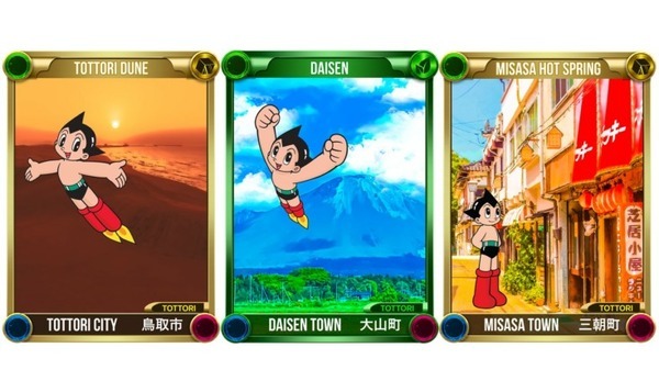 第一弾は鉄腕アトムと鳥取県がタイアップ。鳥取県は県を挙げて宇宙産業の飛躍に向けた様々な取り組みを行うほか、日本一の星空継続観察都市であることから「星取県」としてもブランディングを進め、鳥取県の様々な景勝地、文化、食の魅力を新たなテクノロジーで訴求していく。日本全国の観光地や観光資源と、日本を代表する人気キャラクターである「鉄腕アトム」がコラボレーションしたご当地NFTトレーディングカードを使って、日本各地の魅力や文化を楽しく学ぶことができるほか、多言語に対応することでインバウンド需要の回復期を見据えた訪日外国人の好意醸成に寄与したいと考えている。