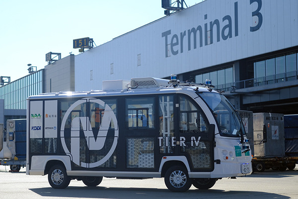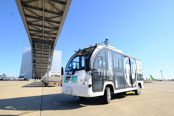 今回の実証実験では、タジマモーターコーポレーション製の車両をベースに、ティアフォーの自動運転システムを使った自動運転車両「GSM8」を用いる。成田国際空港制限区域内を自動走行し、制限区域内の実装に向けて課題抽出を行う(安全管理上、ドライバーは搭乗する)。