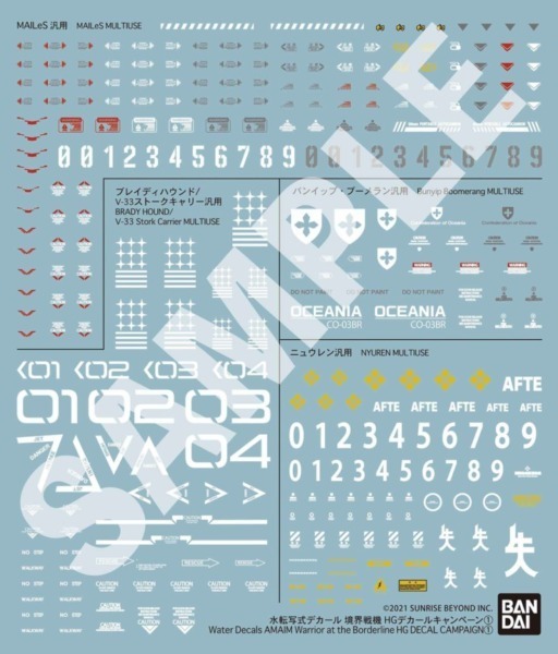 境界戦機に登場する各戦力のマーキングデザインを収録し、好みに合わせてHGを装飾することが可能。