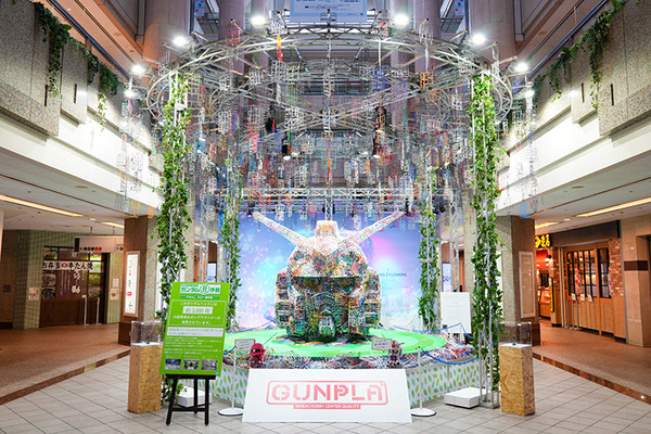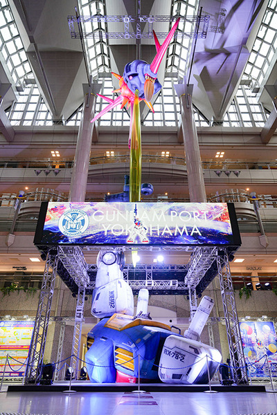 ランドマークプラザ1階 サカタのタネ ガーデンスクエアに『機動戦士ガンダム』の最終話の名シーン「ラストシューティング」を描いた17mの巨大バルーンが展示された。ガンダムがジオングヘッドに向けて右手のライフルを真上へ突き出している印象的な場面を再現。11時~21時(毎時00分、30分)には映像や照明による特別演出で、迫力ある名シーンを間近で体感できる。