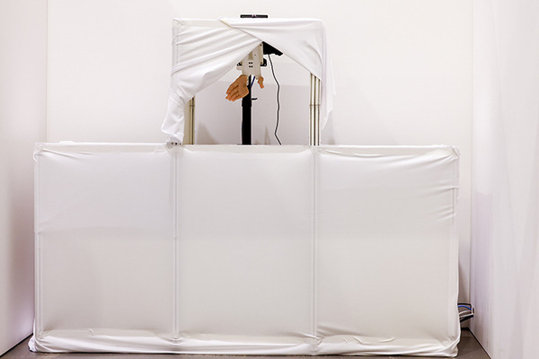 『さわれるVR握手会』には特設ブースが設けられ、ファンはこの中で、オンラインの鹿沼さんと1対1で新しい体験をした。