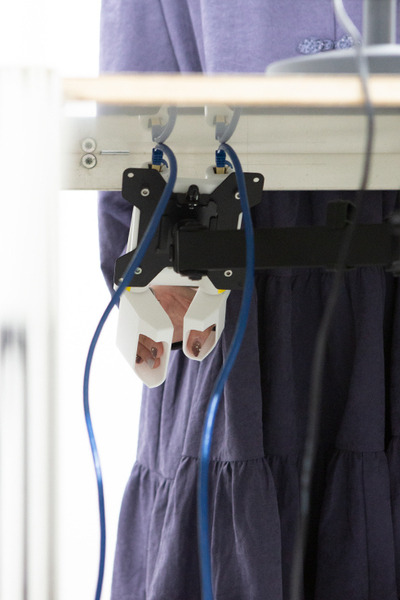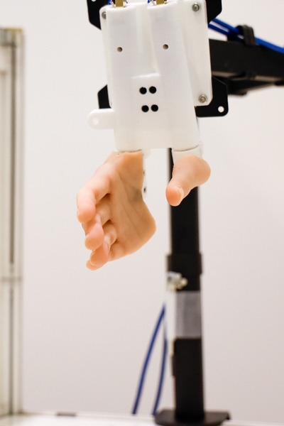 今回のシステムは親指と人差し指側の2つのモーター、2自由度(2軸)で、位置、速度、加速度をデータ化して、完全に双方向に力を伝達しています。すなわち、正しい感触と正しい力加減が伝えることができます。アイドル側はファンの手の大きさ、柔らかさ(弾力)、握った強さなどを感じます。硬さについて更に言えば、ブヨッとして硬いのかカチカチで硬いのかも伝えることができます。