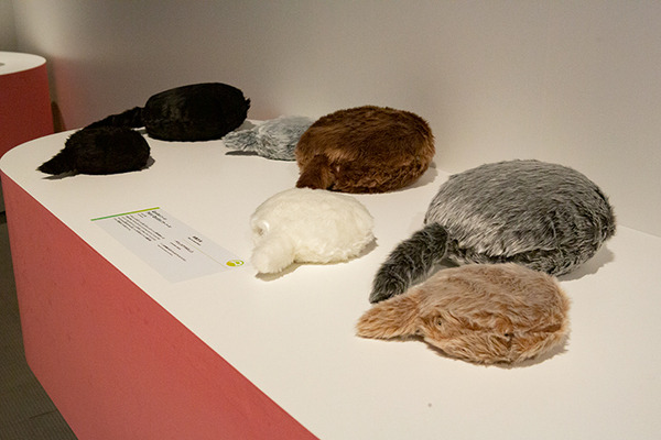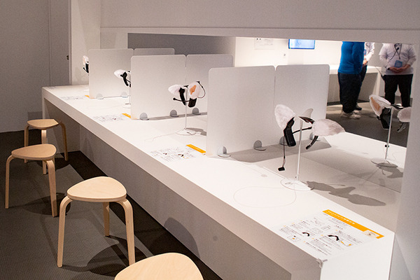 ユカイ工学の「Qoobo」(クーボ)。なでると尻尾を振ってこたえてくれる。会話のないコミュニケーションを体験しよう